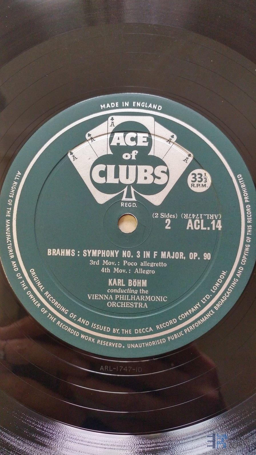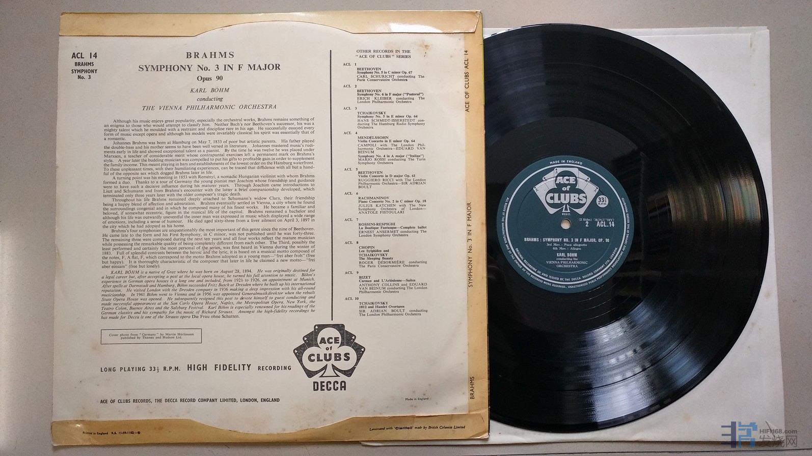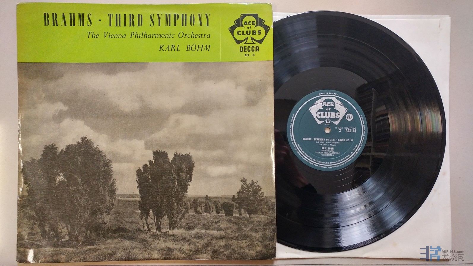 伯姆 指挥维也纳爱乐乐团《勃拉姆斯 第3交响曲》,英国DECCA单声道,ACE of CLUBS厚盘头版,唱片NM-,50元