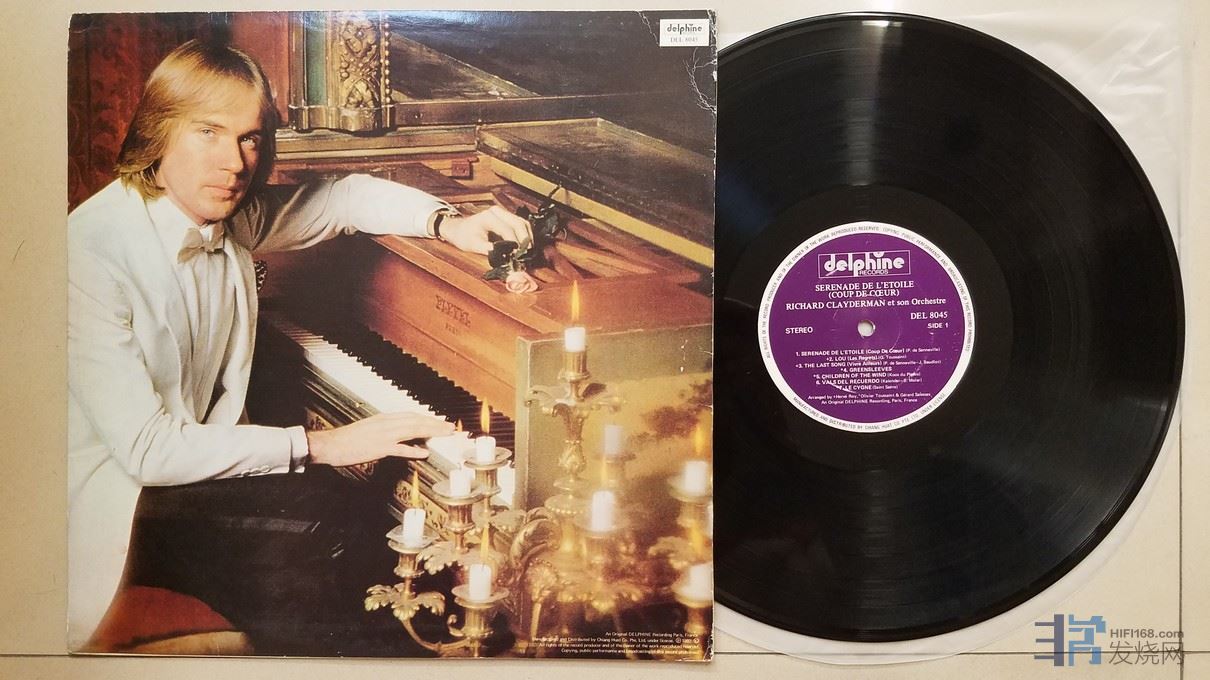 钢琴王子 理查德·克莱德曼 演奏《星星小夜曲、绿袖子 等著名钢琴曲》,法国Delphine立体声原版录音,新加坡发行,厚盘,唱片NM-,120元