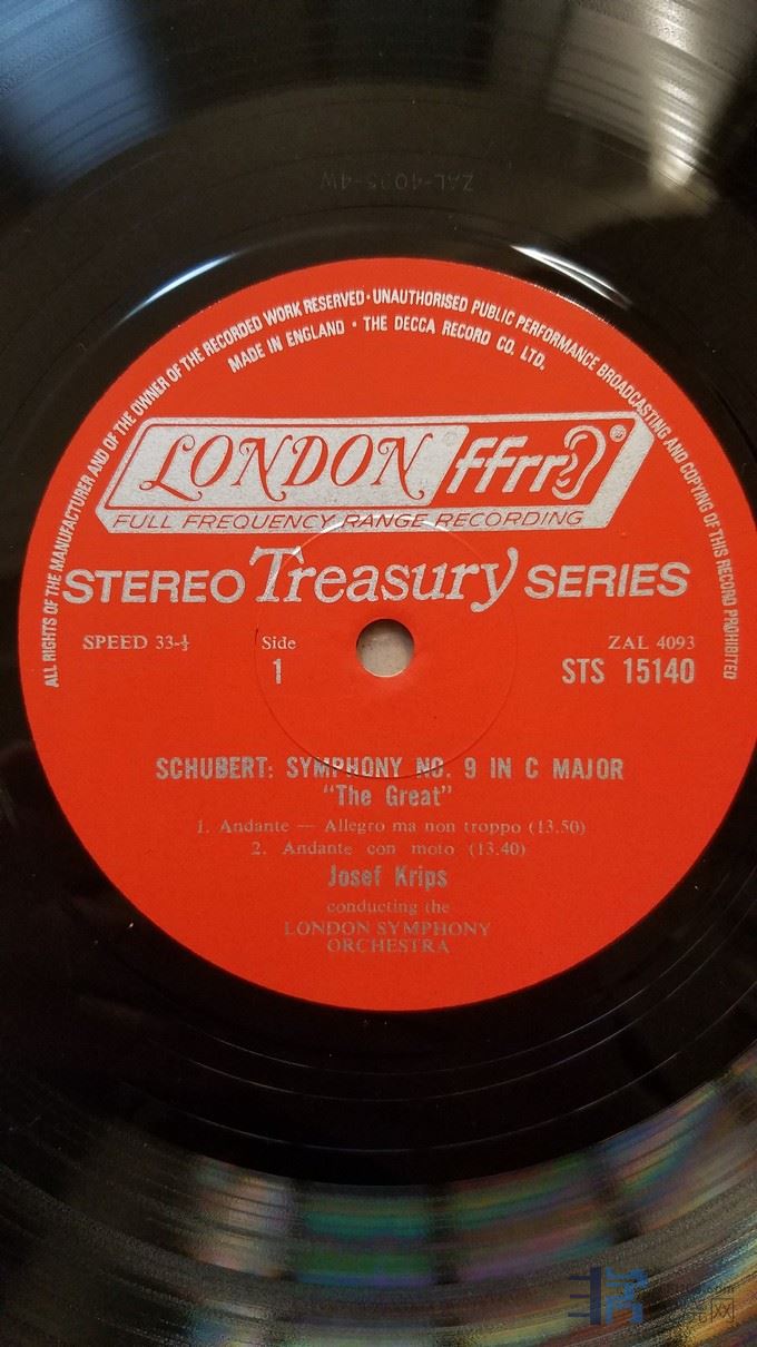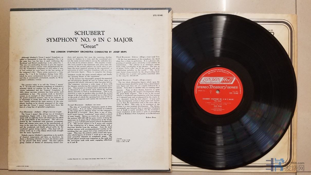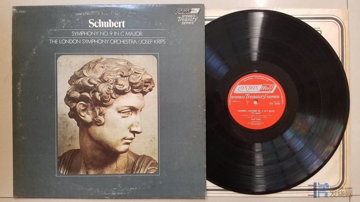 克利普斯 指挥伦敦交响乐团《舒伯特 第9交响曲(伟大)》,,英国LONDON立体声,厚盘,唱片NM-,45元