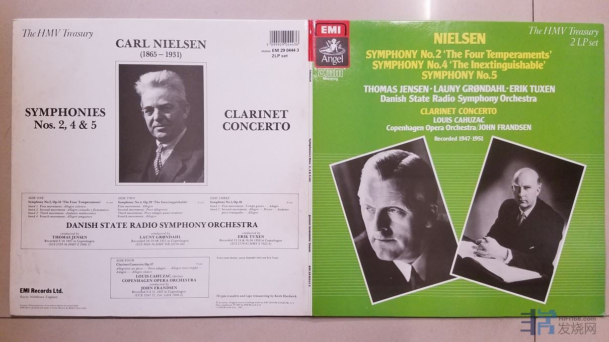 W2272-6 丹麦国立广播交响乐团、路易·卡优札克 单簧管《卡尔·尼尔森 第2、4、5交响曲、单簧管协奏曲》(2LP),英国EMI单声道,2张唱片NM,110元.jpg