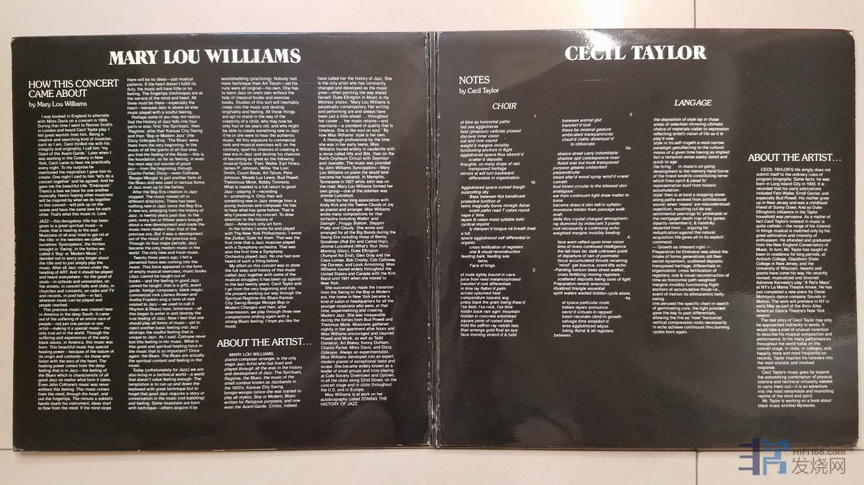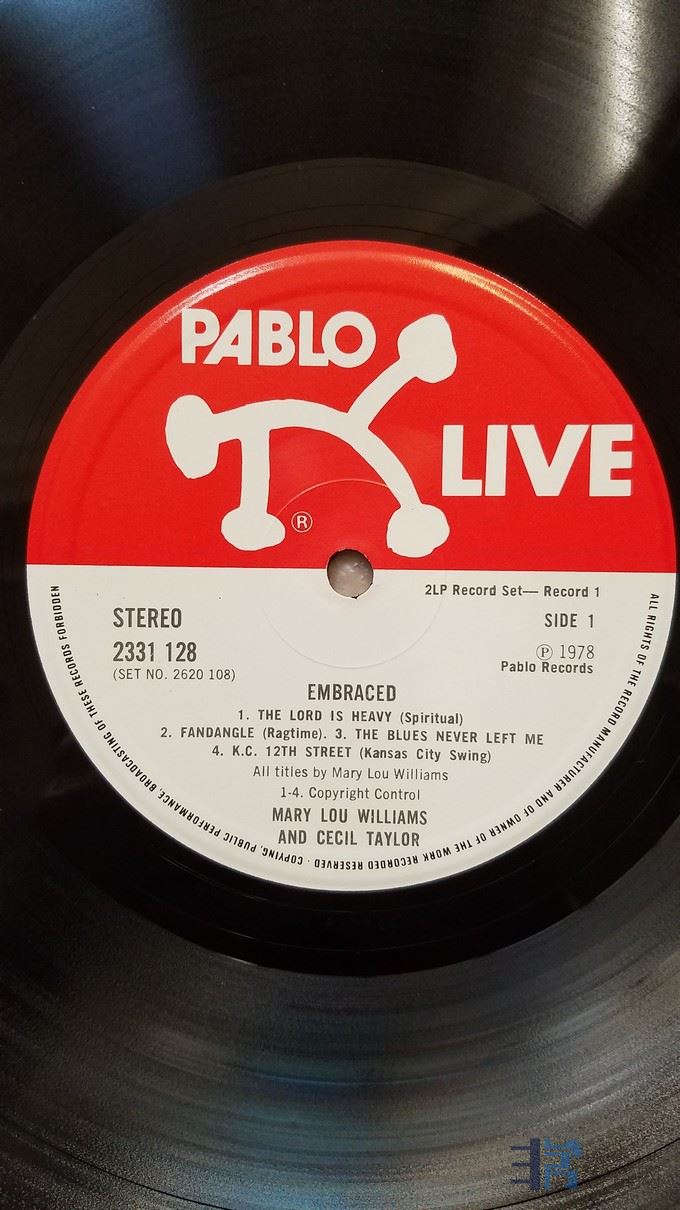 W2280-1 爵士名盘,爵士咆哮教母 Mary lou Williams、Cecil Taylor 钢琴《拥抱 Embraced》(2LP),英国 PABLO LIVE 立体声,2张唱片NM,480元.jpg
