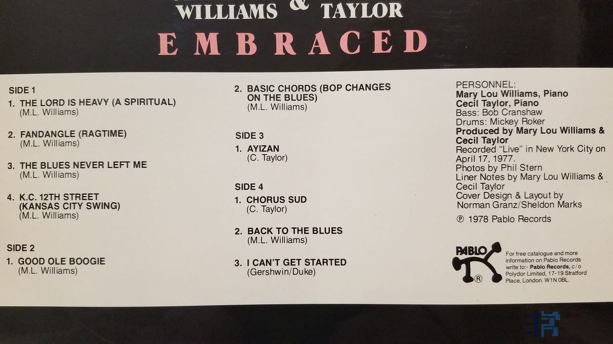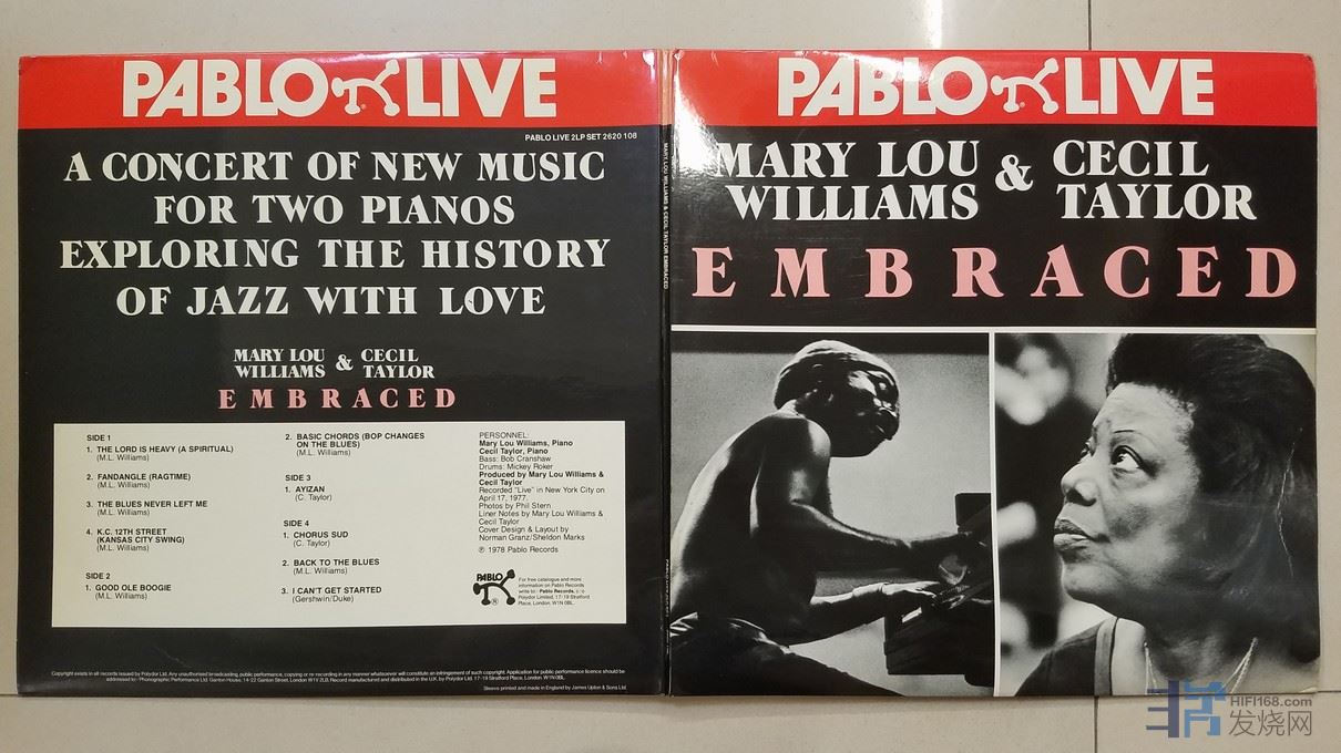 W2280-5 爵士名盘,爵士咆哮教母 Mary lou Williams、Cecil Taylor 钢琴《拥抱 Embraced》(2LP),英国 PABLO LIVE 立体声,2张唱片NM,480元.jpg