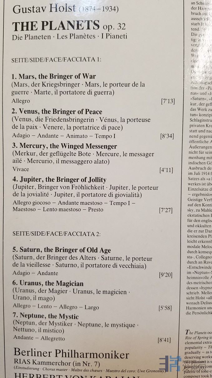 W2310-1 《发烧音响》上榜,卡拉扬 指挥柏林爱乐乐团《霍斯特 行星组曲》,西德DG立体声,唱片NM-,150元.jpg