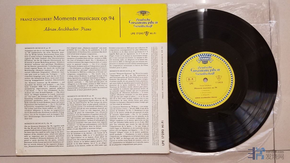 阿德里安·埃施巴赫 钢琴演奏《舒伯特 音乐瞬间》,德国单声道,罕有10寸盘,DGG大禾花厚盘头版,唱片NM-,70元