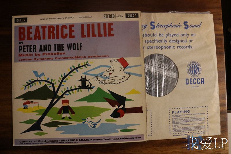 1339,圣桑《动物狂欢节》、普罗科菲耶夫《彼得与狼》,上世纪初最著名的英国女演员碧翠丝.莉莉(Beatrice Lillie)旁白,卡钦、葛拉夫曼钢琴,韩德森指挥伦敦交响乐团。超级发烧的录音!Decca英国宽标ED1头版,最早期彩色封背,NM-,680