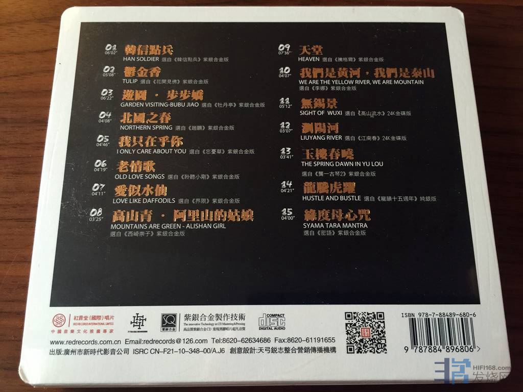 2019.2.1.《红音堂紫银版发烧天碟欣赏》放假了,得放松一下,抽出红音堂紫银版发烧示范天碟一一品赏。这12张精品限量碟是红音堂不惜重本紫银合金直刻母盘用心制作。录音效果清丽脱俗,气势不凡,相当棒音乐内容与音效水准,具有精准的定位,民乐层次分明,空音感深阔,给人轻松的享受,极致的男女发烧人声。12张精品收录了包括民乐,独奏,人声等等,发烧靓声,必备天碟首先是《祝福中国》炎黄子孙生生不息世代相传的龙虎精神。然后是新春《招财进宝》乐曲以激越震奋的节奏,气势磅礴的场面,表现了奋进向上的情绪。《虚籁.方锦龙》《香山琴韵.刘勇刚》《聆听小刚2》《许菱子》《浔阳吉他》《周末的独白.项知格》《密语2》《响5》《红音堂十周年纪念特辑》总12张紫银版。深受音乐发烧友喜爱的作品都在这12张碟里面。呕心沥血经典之作,古典民乐那种真切而又深刻的内心感受,以及对美好生活的渴求,情真意切,感人至深。发现采用紫银版录制压片,无论质感,层次,动态上都锦上添花。----2019年春。
