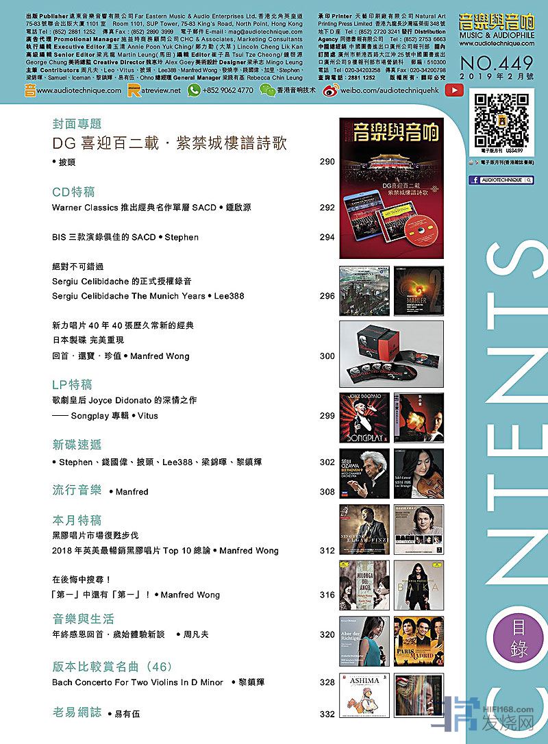 今期的音乐与音响封面专题 : DG喜迎百二载.紫禁城楼谱诗歌 CD特稿 : Warner Classics推出经典名作单层SACDBIS三款演录俱佳的SACDSergiu Celibidache的正式授权录音---Sergiu Celibidache The Munich Years、新力唱片4040张历久常新的经典、LP特稿 : 歌剧皇后Joyce Didonato的深情之作--- Songplay 专辑,其余的最新碟评、音乐与生活、版本比较赏名曲、老易网志…等等栏目也是同样内容丰富,记紧捧场啊!