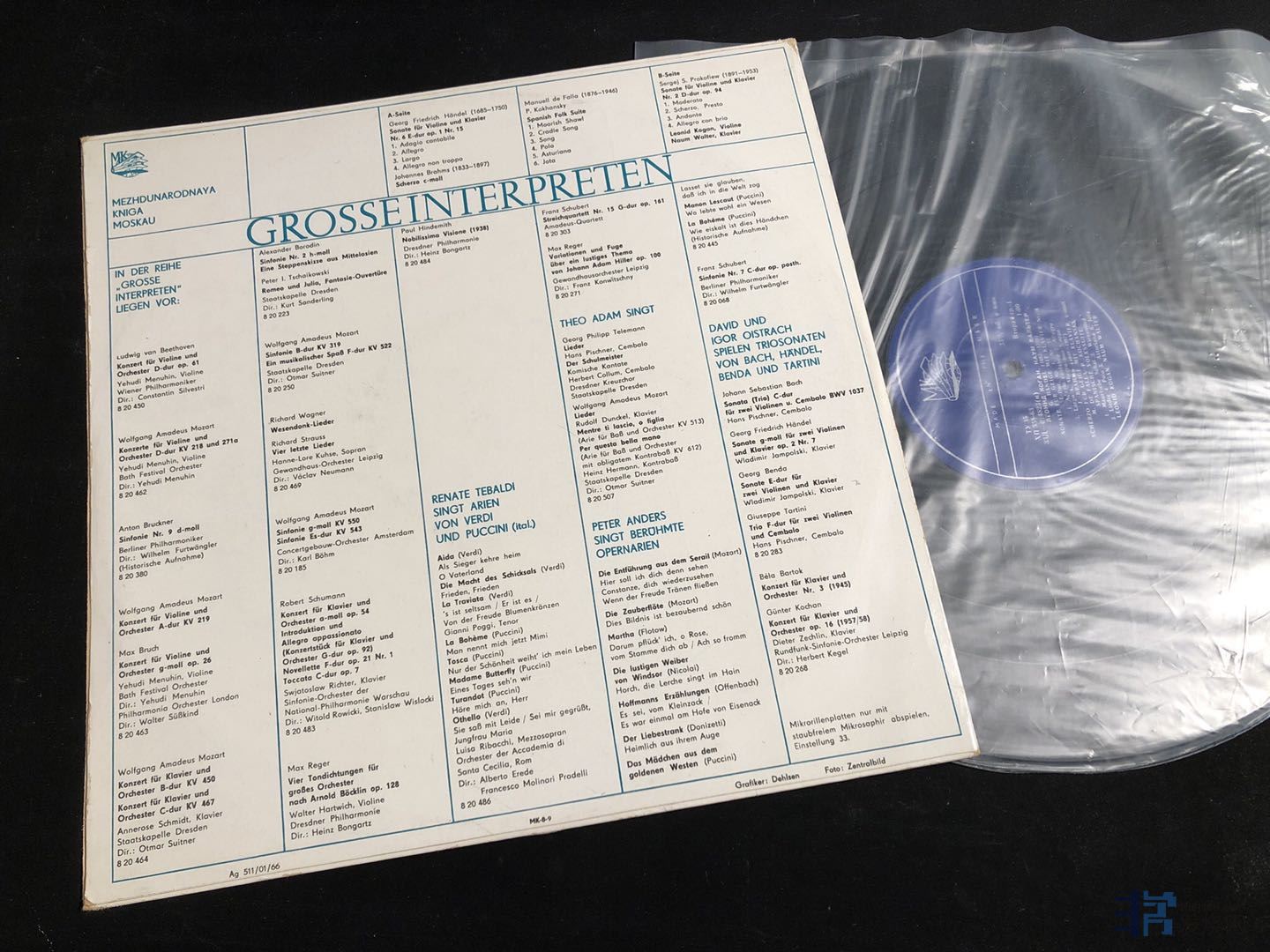 这张唱片在苏联是最后的火炬标时期了,1964年;这张是苏联为当年民主德国专门制作的出口版,MK系列。这种MK系列的声音普遍非常出色,比苏联本国的底噪要低不少,而且中低频更为宽广而富有细节。另外,这张法国完成的录音当时还有一首巴赫小提琴无伴奏Nr3, BWV1005,拉威尔的茨冈以及德彪西,萨拉萨蒂等人的小品曲目。恰好在美国的PIROUETTE公司发行的一张柯岗小品中包括巴赫小无Nr3和普罗科菲耶夫的小奏Nr2,为此我觉得这张编号JA19018的PIROUETTE录音其实和这张MK的小品是同一个录音来源。