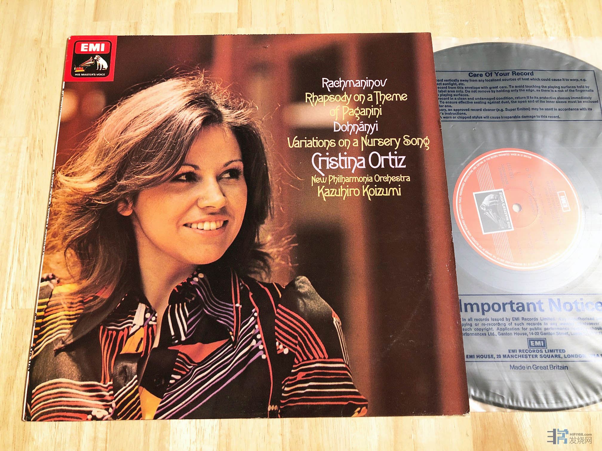 唱片简介:奥迪兹 (Cristina ORTIZ),钢琴 拉赫玛尼诺夫 帕格尼尼主题变奏等 EMI ASD3197 1976年 英国 黑白邮票狗标立体声首版