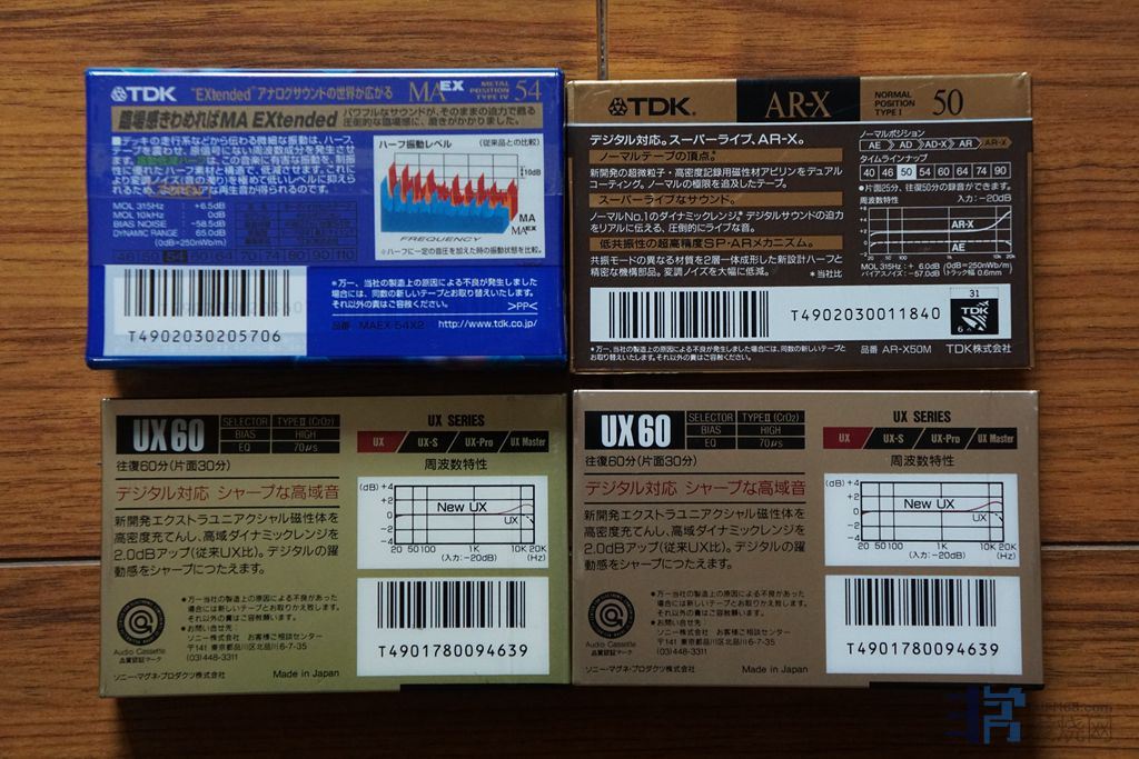 打包出5盘高级空白磁带:两盘TDK MAEX54,四类带,两联装(里面有独立包装);一盘TDK AR-X50,顶级一类带;两盘SONY UX60,二类带;全都是日版,全新未拆,外包装完好无破损(看实物图),我只保证全新未拆,里面情况不清楚,看好再下手,全部打包250元包邮出(不接刀,不单出),磁带可复制,二手商品售出不得退货(快递签收后不得退货,请签收前仔细检查)。