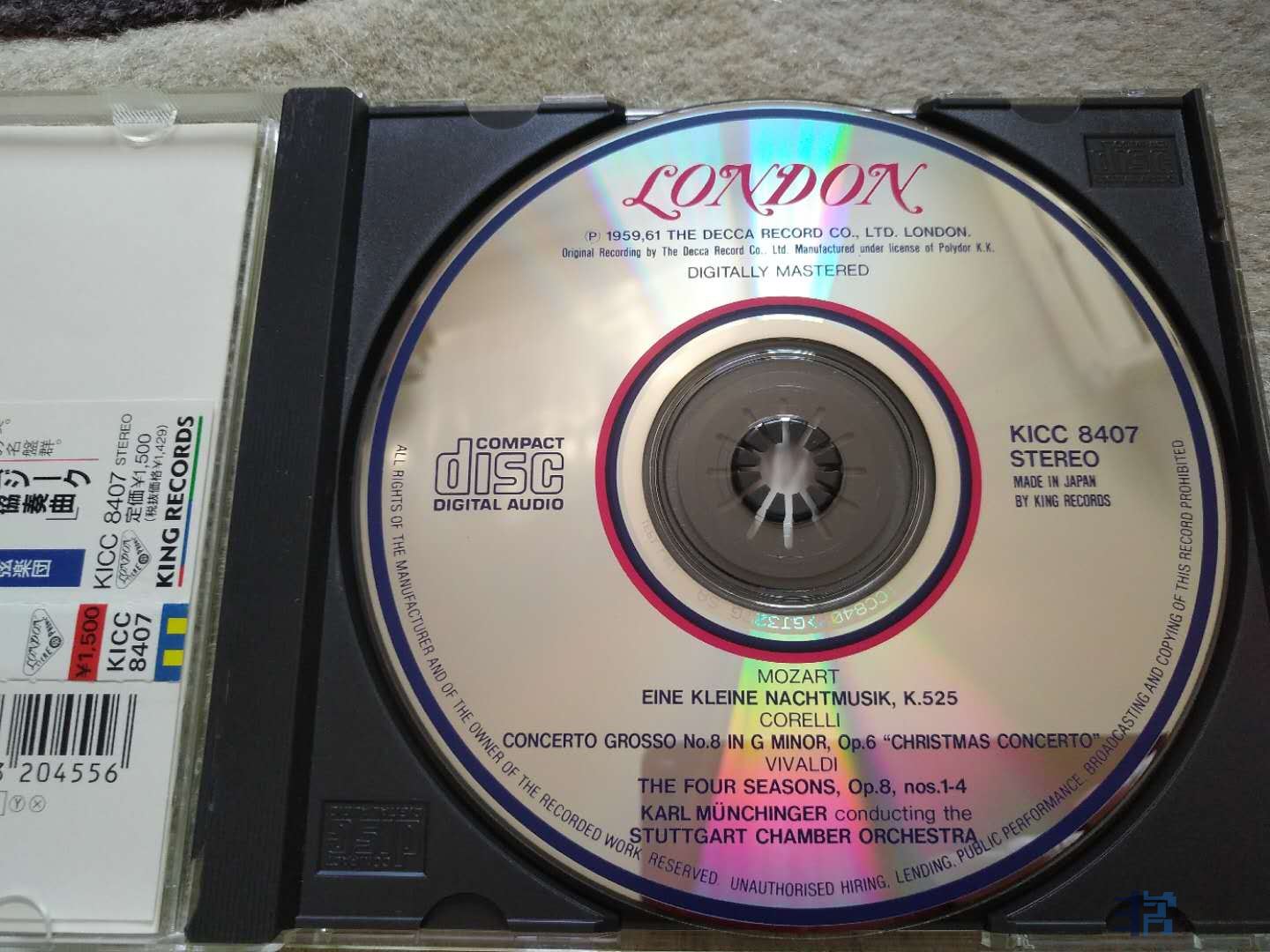 44,最为传奇的《四季》录音 穆幸格指挥斯图格登乐团(这个组合是DECCA著名的靓声标志) 真正的四季皇,DECCA1958年最早期的立体声,早期胆咪的杰作,突出小提琴部, 声音又厚又通透,多少发烧友收了无数版《四季》,最后情归这一版。日本版大LONDON 无码 95新 148元