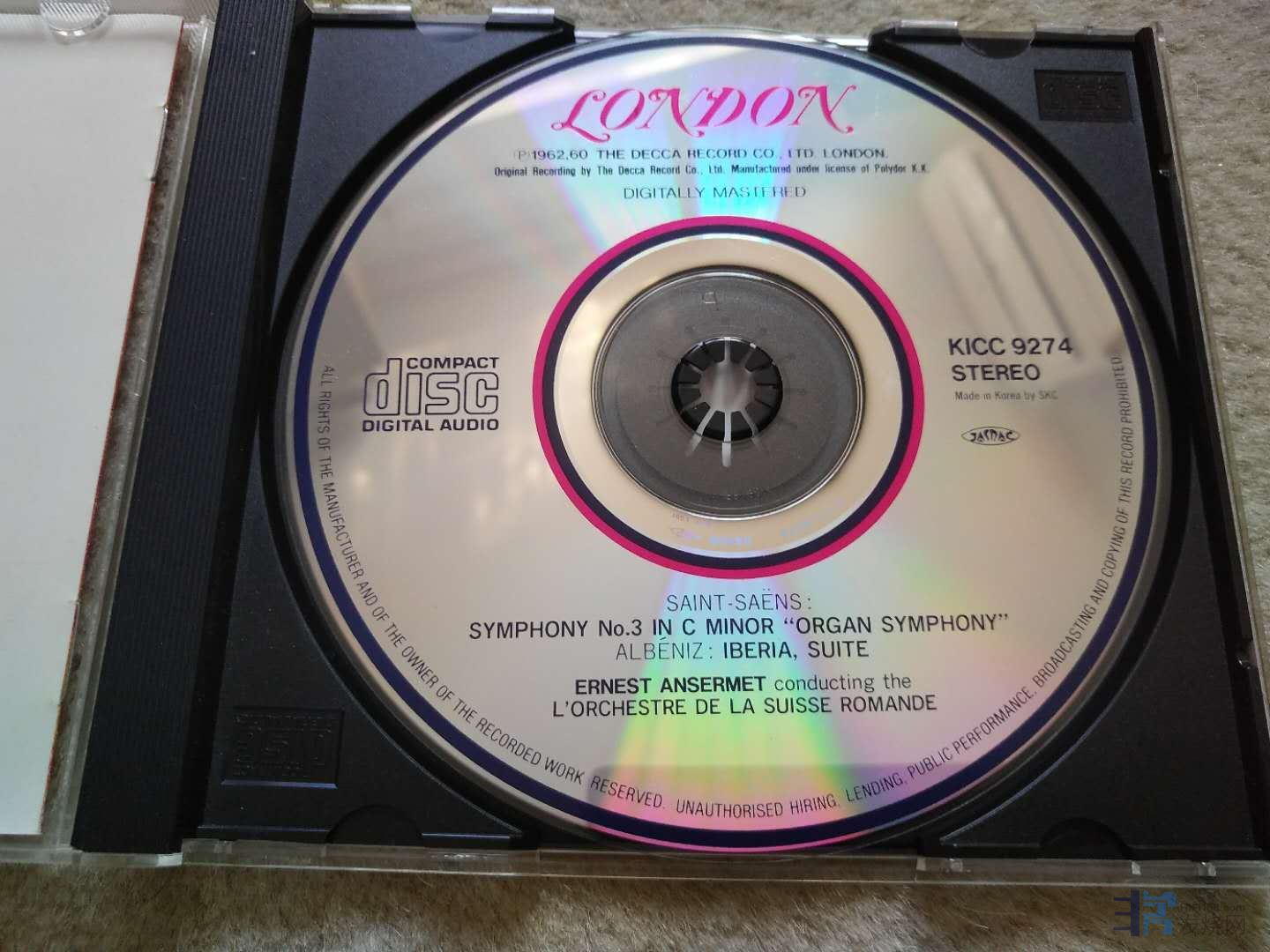 ,47,发烧名曲 安塞美 指挥 圣桑 《管风琴交响曲》+西班牙名曲 阿尔班尼兹 《伊比利亚》 日本版大伦敦 无码 中高价版 94新 纸水迹 特价 138元