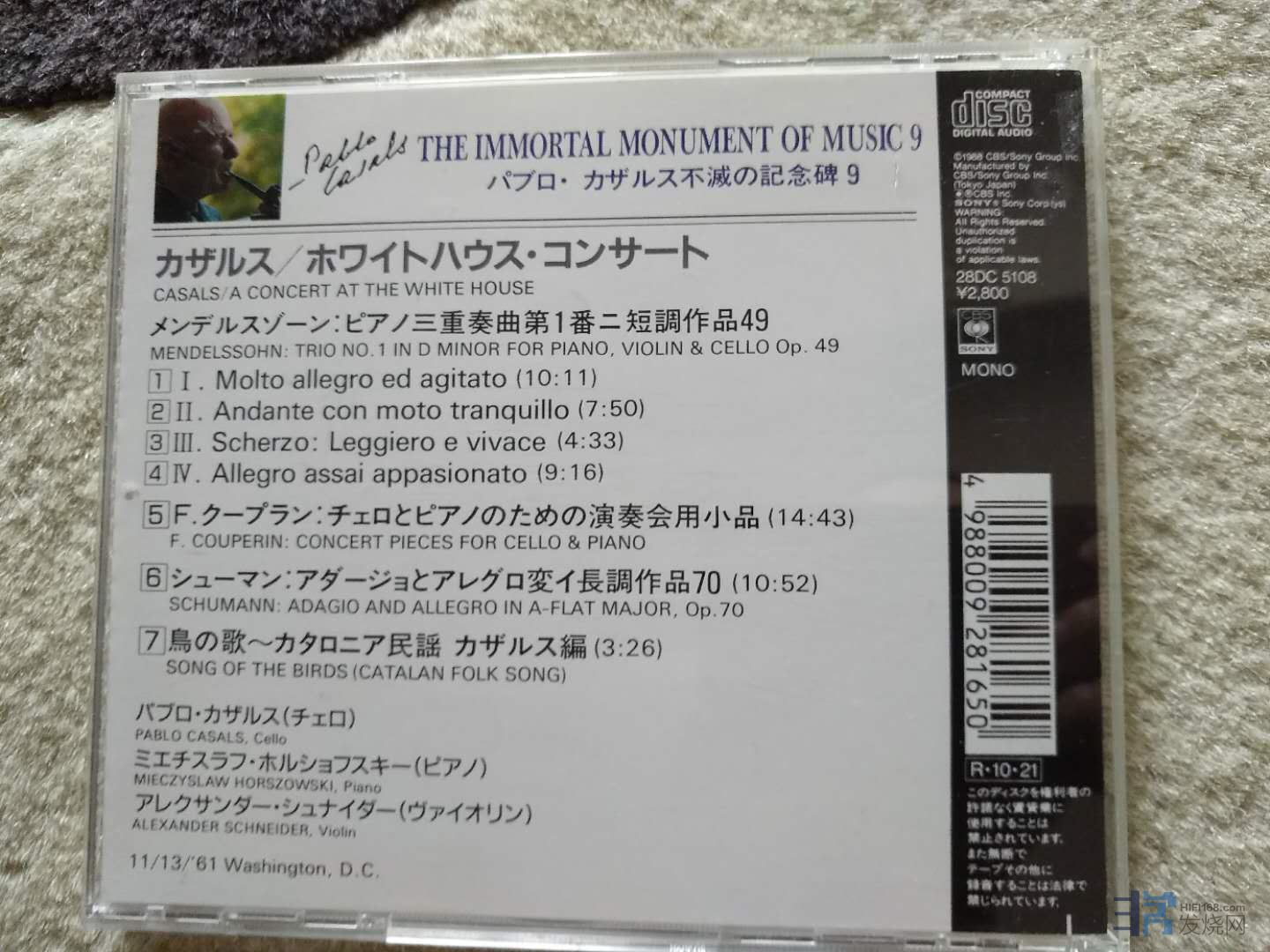 ,48,独力一人振兴大提琴演奏的泰斗 卡萨尔斯 一生最辉煌的时刻《白宫演奏会》 也就是给总统演奏 日本2800元高价首版有码 97新 95元