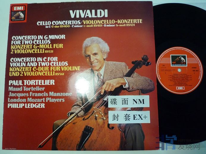 托特里埃演奏维瓦尔第的五首大提琴协奏曲,EMI有圈彩色邮票狗,英国压片,首版,180块