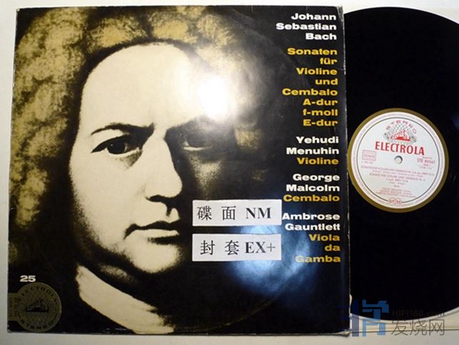 梅纽因和马尔科姆演奏巴赫三首小提琴和大键琴奏鸣曲BWV1015、BWV1016、BWV1018,这一版录音还有中提琴和古大提琴做伴奏,第一面和第二面开头各有一处细小的针痕,经过有几下“哒”声,如图,其余NM,EMI德国压片,白金标首版,120块