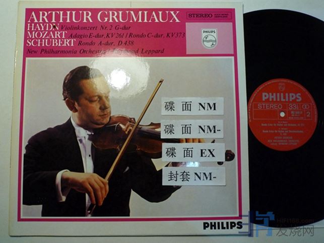 格鲁米欧演奏海顿第二小提琴协奏曲,莫扎特柔板KV261,回旋曲KV373,舒伯特回旋曲D438,飞利浦红银交叉圈,荷兰压片,第二面开头部分有条1厘米多的浅划痕,如图,经过有很轻微的“哒”声,此处EX,其余挺好,130块