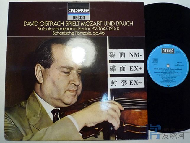 奥伊斯特拉赫演奏布鲁赫“苏格兰幻想曲”,和他儿子合作演奏莫扎特小提琴和中提琴交响协奏曲KV364,DECCA德国压片,莫扎特协奏曲这一面EX+,有些表面痕迹,播放很安静,220块