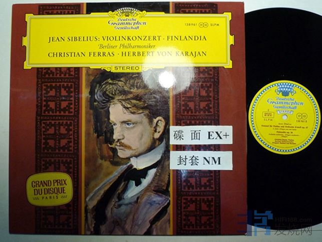 卡拉扬指挥,费拉斯演奏西贝柳斯小提琴协奏曲Op47,“芬兰颂”Op26,DG大花,一点钟方向“MADE IN GERMANY……”,德国压片,碟面只是表面抽取痕迹,播放比较安静,120块