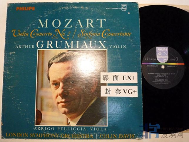 格鲁米欧演奏莫扎特第二小提琴协奏曲,与佩里西亚合作演奏莫扎特小提琴和中提琴交响协奏曲KV364,飞利浦美国压片,碟面只是表面痕迹,播放比较安静,120块