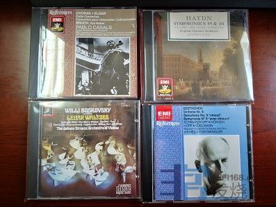 9、卡萨尔斯 德沃夏克 埃尔加大提琴协奏曲,共有两张,一张荷兰无码,微痕几丝,售价88元,一张德版SONOPRESS压片无码,基本完美品相,售价135元。
