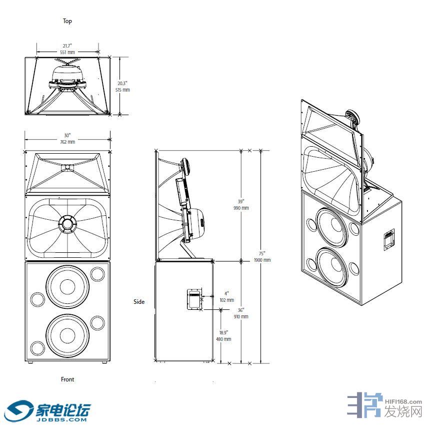 LF-3215采用两个15英寸(381毫米)低频单元专为扩展电影所需的低频响应而设计, 频率范围为3 2 H z 到250Hz。低音单元使用Close Coupled Woofers (CCW)耦合低音布局方式,这种设计方式使低音单元布局更加紧凑、声能耦合更加紧密,相对行业内广泛使用的单元布局技术,拥有更出色的角度控制力和频响范围。 SC-323安装十分简便。MH-1063在工厂就已预先组装好,节省了实地安装的时间。只需要三个螺钉就可以将MH-1063固定在LF-3215的顶部。
