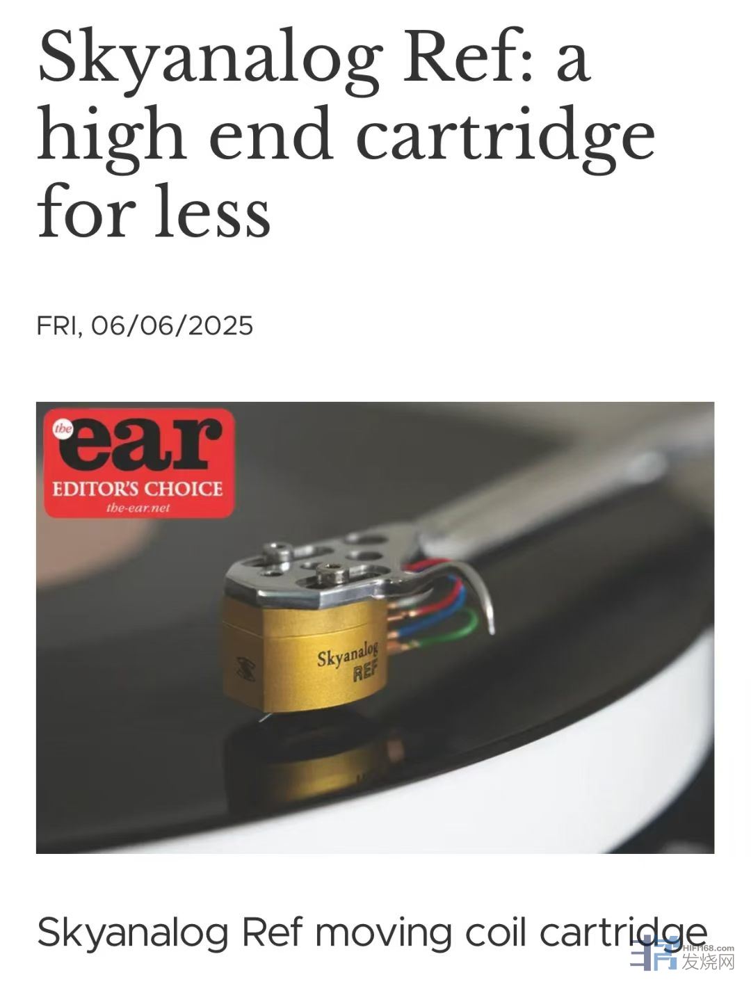英国老牌音响杂志《EAR》近日授予了以声出口版品牌Skyanalog REF编辑推荐奖!这是继《LP》、《Hifi News》和《Fidelity》三大欧洲权威杂志分别授予的年度产品、年度杰出产品、传真大奖后,以声推出的旗舰唱头收到的第四个欧洲大奖!REF的声音设计以「中庸」为本,用清澈而富有空气感、自然、均衡的「中国声」获得了欧洲各大权威杂志的认可!