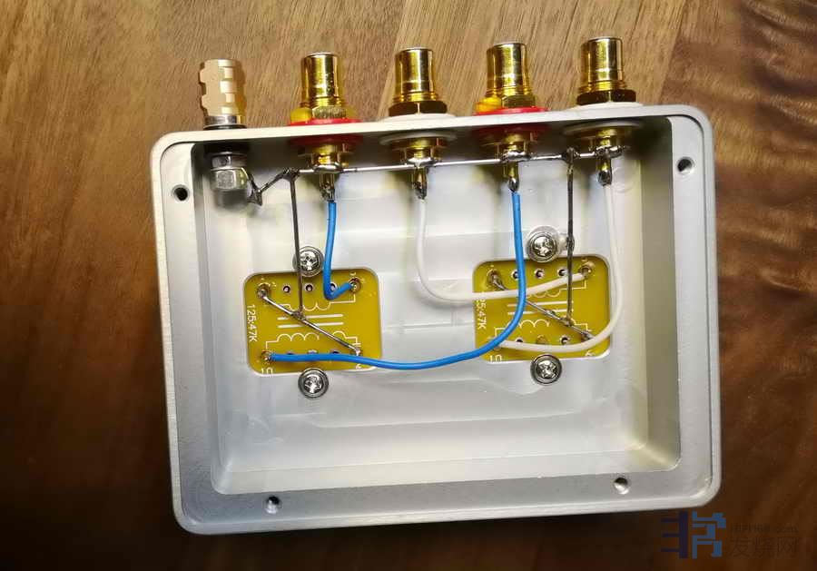 我的音响系统中唱放部分一直不能令人满意,主要是MC放大(升压)不好,声音生硬,为此曾经购买原件、外壳,自己组装过两个升压牛,但都不理想。今天偶然走进昆泰酒店512房间深圳博之韵的展室,看到其展示的MC升压牛小巧精致,就与厂家的汪先生聊起了升压牛选材和制作体会,很受启发。汪先生极力建议我买一个他们的升压牛试试,并承诺如觉得不好,展会期间可以无条件退货。于是交钱领回一头“小牛”。