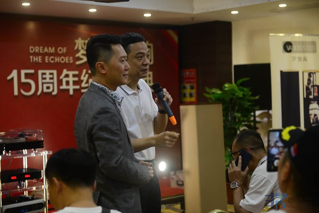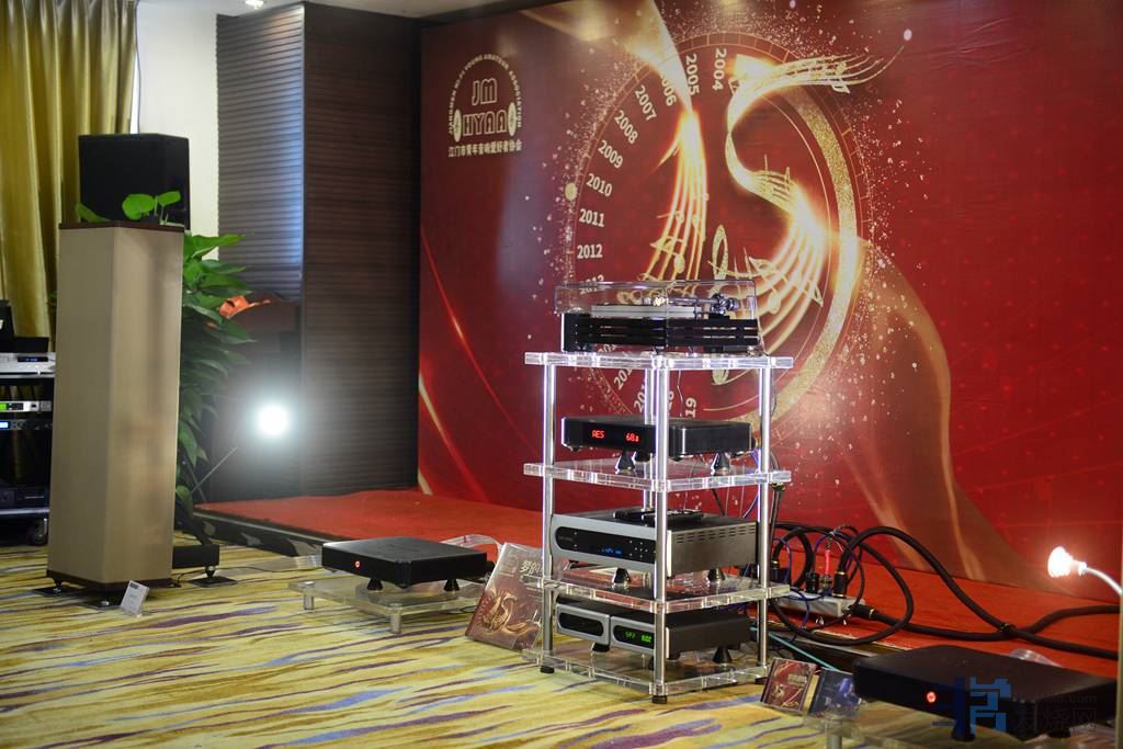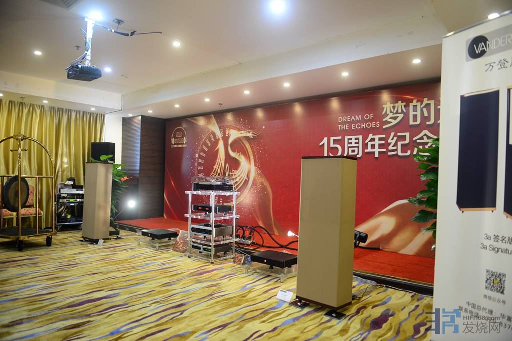 19楼会议厅(主大厅):华富音响代理器材摆布。华富音响公司主要致力于经营世界高端器材,这次提供的器材是最具价值的高端音响产品。器材线材组合极音乐性、高解析、高保真、以高性价比著称。华富音响代理组合的器材有:美国万登庭Vandersteen音箱,霸道Bel Canto功放,爱琴Adcom功放,音乐厅Music Hall黑胶唱机,飞雀Future audio功放。本次活动让音乐爱好者在细品慢听中发现惊喜不断。