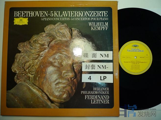 肯普夫演奏贝多芬5首钢琴协奏曲,盒装4张,DG德国压片,200块