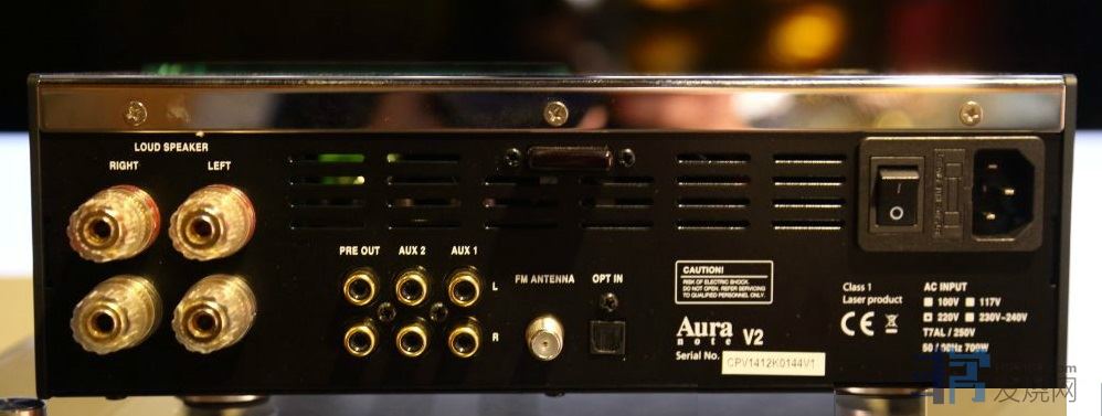 除了功能强大, Aura Note V2的设备亦一丝不苟, 其中一组USB Type B头输入, 就可以升频至24bit/192kHz, 传统的光纤输入当然亦可以, 但既然Aura Note V2已是一部多功能合并机, 再加设数码输入, 明显是对现今的CAS加以照顾, 而说明书明上亦列明, USB数码输入时, Driver驱动程序亦支援Windows & MAC。在放大器后级方面, Aura Note V2亦提供每声导达125w之强大输出, 细B对这类夸大(或作细)输出屡见不鲜, 由 Aura Note V2推动过大小不一的多款扬声后, 笔者可以直说这绝对是原子粒式的125w, 当功率要求特别高的录音时, Aura Note V2仍然段段有, 在持续的需索下, 仍没有多大气咳脚软, 从外表上还以为是放在家中的"芝娃娃", 原来是"斗牛犬"。