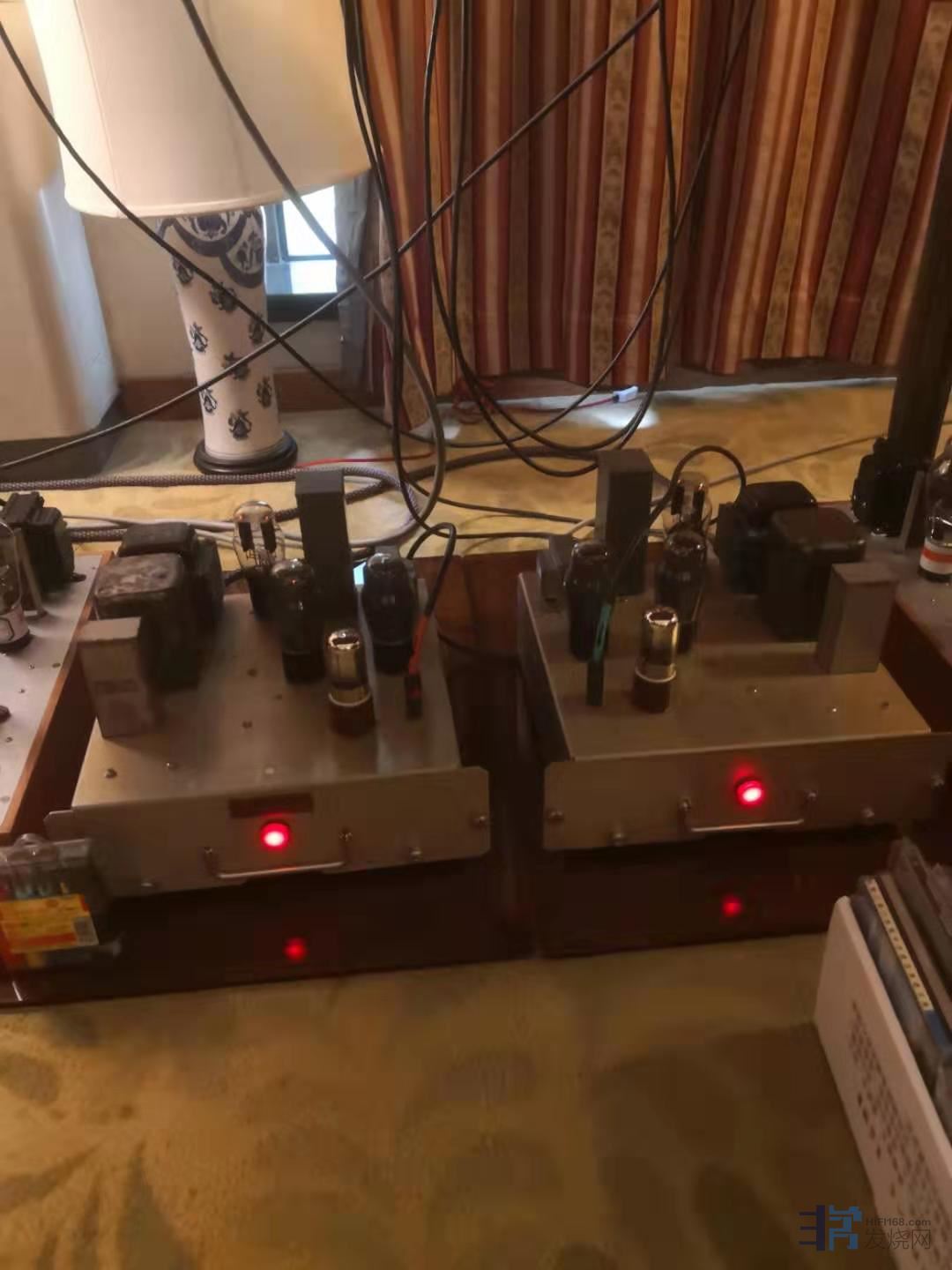 首次参加音展的内蒙古苏迪胆艺的主事人苏建忠老师是在西北发烧圈里鼎鼎大名的古董胆机复刻专家。对古董胆机的研究已有几十年的历史,目前在做胆机高端定制业务。苏老师与其他古董胆机复刻者最大的区别在于其并不迷信于材料上的简单复制,而是通过电路参数上的调整和电子元器件的灵活运用从而让机器在具备当年古董胆机之神韵外,在驱动力和控制力上更加适应大多数不同阻抗与灵敏度音箱的搭配。此次苏建忠老师带来的是一套经典的古董音响器材:音源为studer A730监听cd唱机,功放为自制分体6v6推挽,自制分体300B单端来搭配早期英国声的代表作品查特韦尔PM200(这对音箱的年龄估计在不少发烧友的年龄之上)。关于studer唱机和pm200我在不同搭配下曾听过多次,总体印象是典型的早期英国声风格,饱满有粘滞感,两端延伸保守,低频不太好控制且层次感欠佳。但此次听到苏老师的胆机作品驱动,让我对这对老古董的固有声音印象大为改观。在6V6推挽的驱动下,pm200低频颇有规模且力度感不错,整体声音饱满绵密。表现交响乐作品是显得非常从容不迫。这套搭配在保持着高级胆机的通透与泛音同时,大大提升了pm200的声音纹理刻画能力。用在场另一位烧友的说——粘而不滞,我则要再加一句概括:厚而不雍。能将老古董的声音基底深度开凿到此等程度,足见设计者的功力和积累。老树虽还是老树,有料照样出新芽!