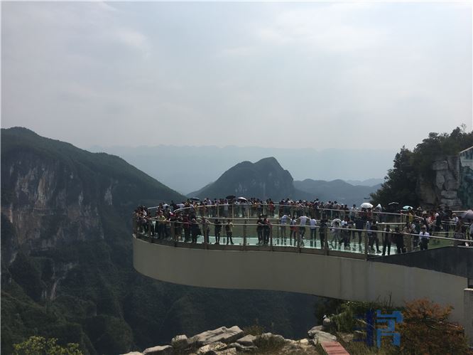 这个廊桥悬空,上面是玻璃。我不敢走。