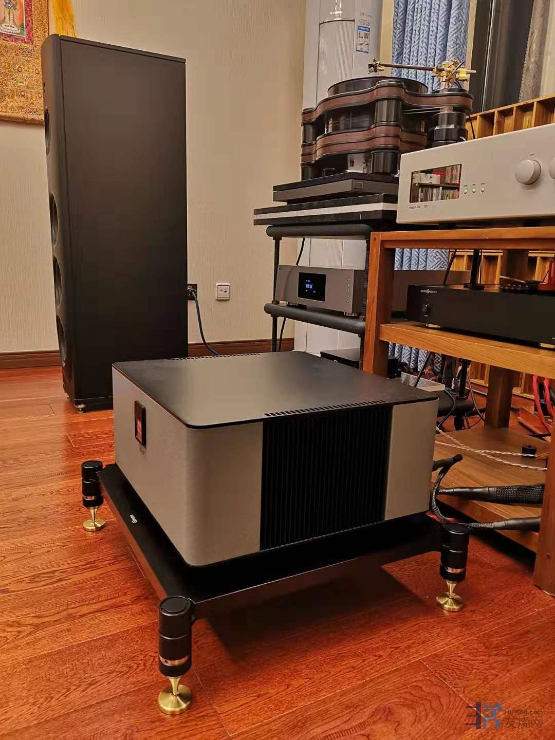 双单声道设计,电源输入开始就是分开的,只是装在一个箱子里而已。2*200瓦8欧,2*380瓦4欧,没有压缩的极致推动力,高贵细腻的声音。