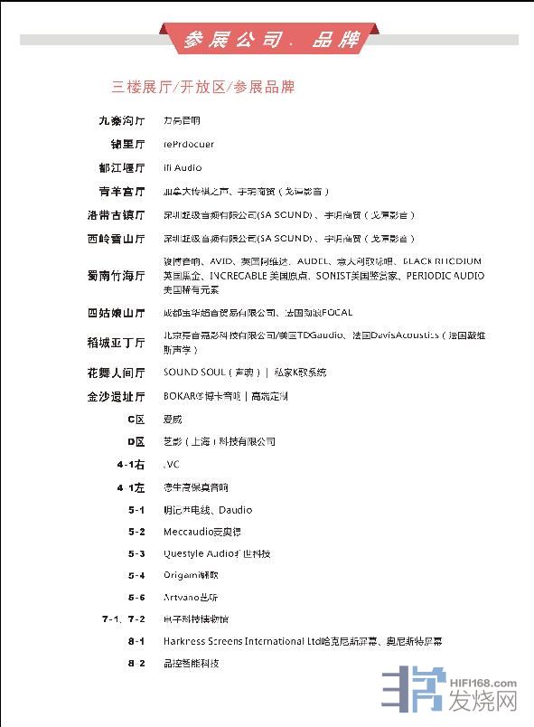 2019成都国际音响展平面图及参展品牌如下: