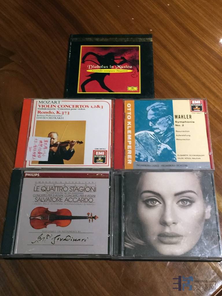 播放一张首版女声《HELL0 25》及阿卡多小提琴《魔鬼的颤音》。感到中高音非常活灵活现,低频弹性和速度感有一流表现,定位很理想,音场穿墙活现在两音箱之间,发烧女声感情婉转动听,喉音粘连肉感丰富,极极娇气人声,婷婷玉立地脱箱站在两个音箱中间,离两箱后一米以上,三维空间理想。