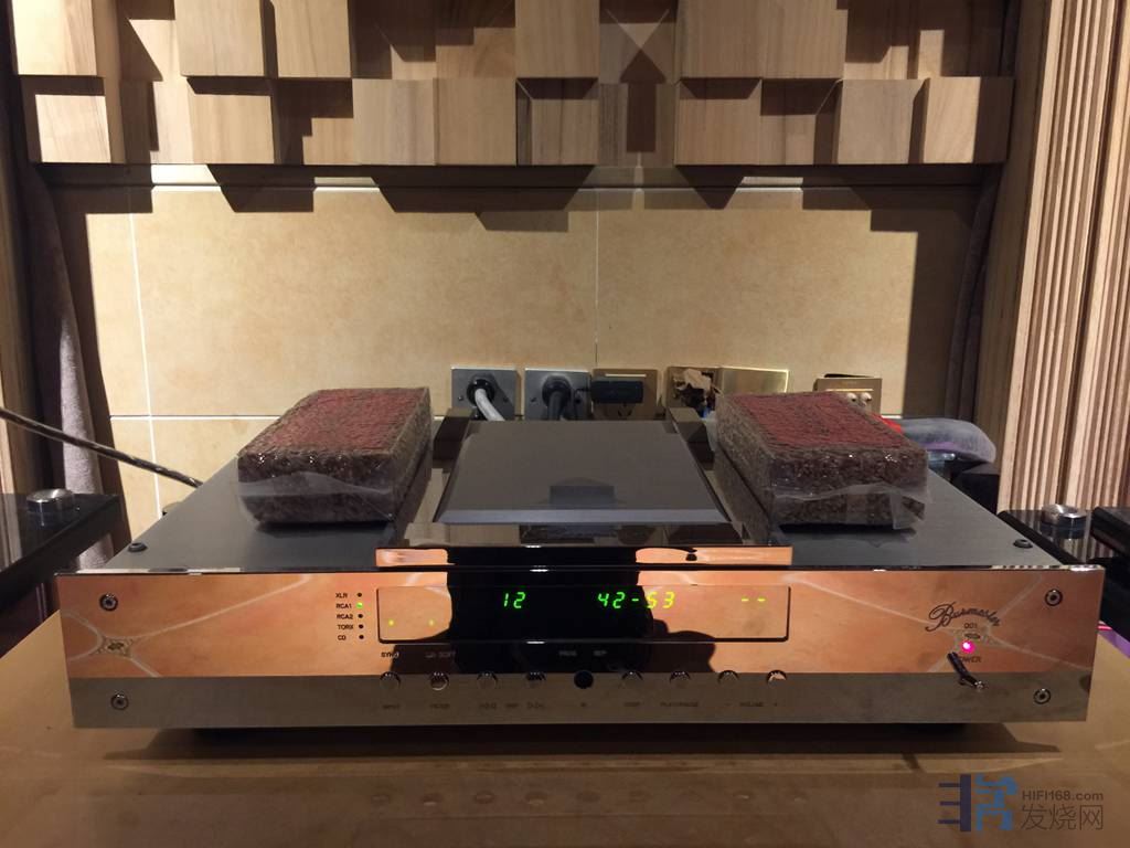 组合相当不错:柏林之声CD机+英国MC平方1250专业大功率功放+英国PMC MB2八爪鱼大型音箱+祖玛音箱线。