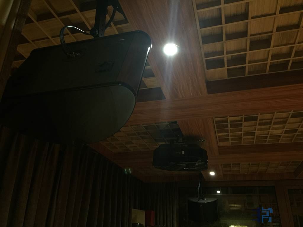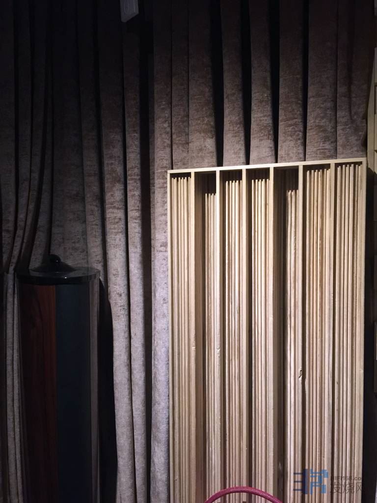 约20多平方米,装修以声学扩散板处理,灯饰与之配合,色彩富丽堂皇。