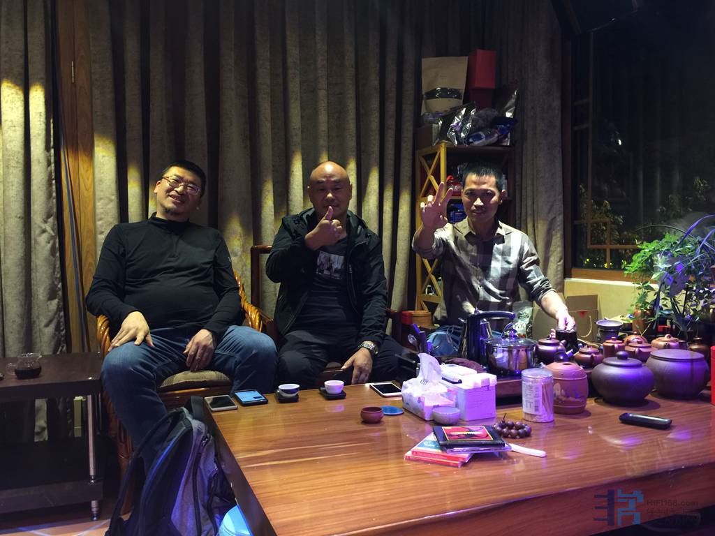 2019。10。19。《西部音乐之旅》有缘千里来相会。今晚有来自:内蒙古牧羊人,河北沧州一葉小舟,石家庄華藏芥子,石家庄沙尘暴,贵州音友,上海高个子,广东乐林8t。大家会聚于成都市温江区汇川园林和守护森林两位兄弟的地盘。对汇川园林和守护森林两位音乐发烧友进行拜访交流,欣赏音乐。晚餐的我们分别进行欣赏音乐去。乐林8t,一叶小丹,高个子,我们去汇川园林兄的听音室。这是一间经过声学处理的环境,约20多平方米,装修以声学扩散板处理,灯饰与之配合,色彩富丽堂皇。汇川园林器材组合相当不错:柏林之声CD机+英国MC平方1250专业大功率功放+英国PMC MB2八爪鱼大型音箱+祖玛音箱线。质感相当不错,汇川园林环境处理得很精致,加上配合得体的器材组合,音乐还愿真实标准,动态延伸极佳,细腻度好,细节水份充盈。汇川园林玩是位园林设计师,我们在网上已经认识10多年之久,经常交流音响音乐,这是第一次会面,有幸,非常感谢有共同音乐爱好。汇川园林通过欣赏音乐后对园林设计上产生了灵感。发烧友都是比较花心的,AV及HlFl两玩不误,他的这间环境影院与HiFi兼容,都是上了档次,自己调校器材非常到位。高个子给播放一张首版女声《HELL0 25》及阿卡多小提琴《魔鬼的颤音》哗,感到中高音非常活灵活现,低频弹性和速度感有一流表现,定位很理想,音场穿墙活现在两音箱之间,发烧女声感情婉转动听,喉音粘连肉感丰富,极极娇气人声,婷婷玉立地脱箱站在两个音箱中间,离两箱后一米以上,三维空间理想。古典小提琴音乐及《马勒第二交响曲》爆棚时中高有细致的表现,低频估计不到竞有如此的排山倒海之势,英国MC平方2后级1250力道足,加上柏林之声的精致,表现相当精彩。汇川园林这套组合播放古典音乐也是一个相当高的层次,意境很优美,大家慢慢品茶继续欣赏不同类型的音乐。 感谢汇川园林的招待。