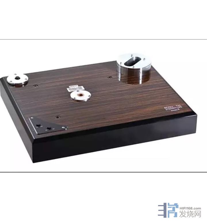 Double X唱盘的设计非常“传统”,搭配了同厂的TA1000唱臂和MCX2唱头。虽然定位不算高,但制造工艺水准却非常之高,其由高密度MDF板材和钢、铝等多种材料以三明治结构用激光切割和柔性胶水打造的65mm厚唱盘底座,底座不但很厚还很重,能够有效减少谐振的影响。而底座的下方配备了三只大型金属避震脚,相信在此级别的转盘中是不常见的配置。厚重的底座表面以光可鉴人的十层钢琴漆面处理,加上可选的木皮纹理组合,让Double X显露出同级唱盘中罕有的华丽外观质感。而且厚重的底座并不光只是好看,还起到很好的抵御谐振的作用。Gunther曾经强调:Acoustic Signature的唱盘本身是不会产生振动的,其转盘均采用恒速的AC/DC(交流/直流,根据不同型号选用不同型号)马达,搭配精密的DSP数字控制系统,可以让转盘达到稳定且低噪音的平稳运转状态。但即便如此,黑胶唱盘还是需要从各个方面抵御与消除谐振的,这些振动不是来自于唱盘内部,而是由喇叭在大音量重放音乐时所引起的频率共振和气流冲击波。Acoustic Signature就是利用唱盘本身的重量来抵挡这些来自于外界的振动。也就是说,Gunther崇尚重盘的设计,因此他家的唱盘越贵的越重,越重的也越静。