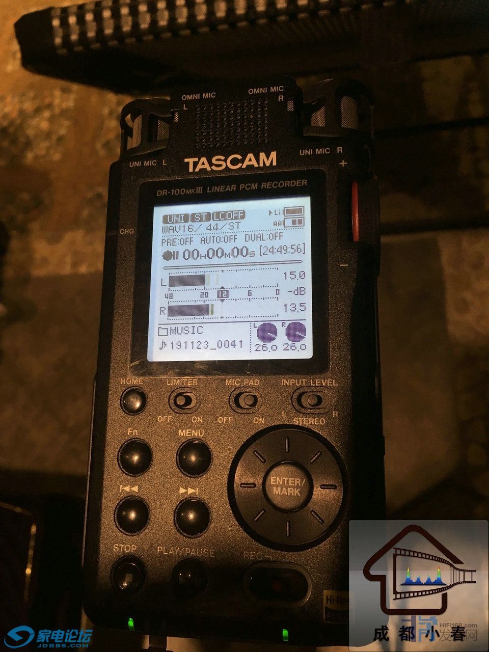 这个还跟录音笔的双拾音头的方向有关系。你可以试一试将索尼D-100的两个拾音头,两两向内相对成45度夹角,再录音试一试。御风听歌 发表于 2019/12/4 11:49:56