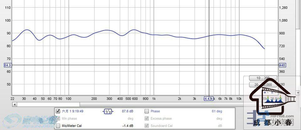 全频响应20HZ-20KHZ基本正负5DB(三分之一精度显示,音箱标原厂频响曲线一般也是3分之1显示 );