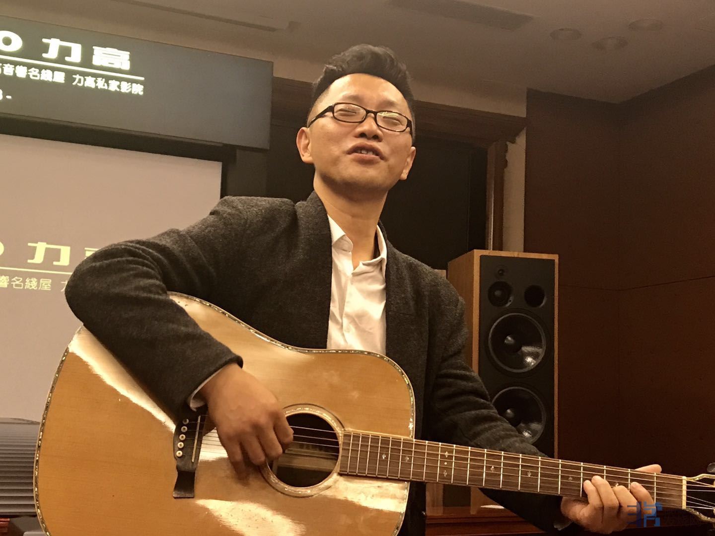 刘亮鹭新出的专辑是《江湖笑》现场为大家演唱的是《笑看风云》。