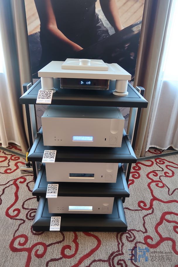 这次所用的冠廷(Lansche audio)落地音箱,我在这两年的展会上听过好几次,虽然我承认它有很高的硬素质,但说实话我并不怎么喜欢它的声音风格。离子高音虽然高频上限去的很尽,但缺乏致密感和实体性,在我看来声音有些假。而Lansche 的中低频又是量感充足甚至有点肥厚,致使与中频的密度也受到了影响。所以当得知今年仙瑟展房用这个音箱系统展示时我本并不看好它。但实际听下来再次颠覆了我的音响观,经过ART线材附件产品和黄信先生的针对性调教之后,冠廷的离子高音居然首次让我听到了韧性和密度。低频在保持宏达规模感同时瞬态表现大幅度提升。虽然中频方面,冠廷式中音风格还能听的出来,但是已经完全进入了我可接受的声音审美范畴之内了。