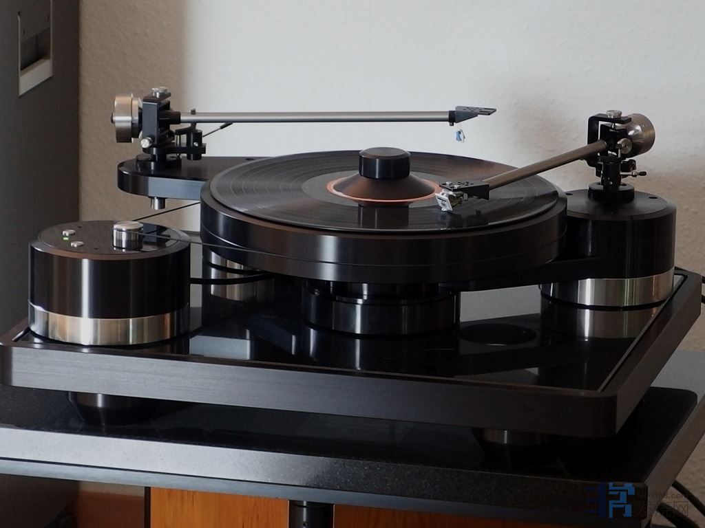 德国Brinkmann Sypder排行老二,采用了Sinus磁驱飞轮马达,10公斤的转盘,高精度油封轴承,带轴承加热功能,确保轴承和润滑油能够一直工作在最佳的温度区间。唱片镇有压盘功能,一般的鱿鱼片都没问题。Sypder最多可以装4支唱臂,还可以升级胆整流的电源,灵活性很大,但颜值上比较低调。