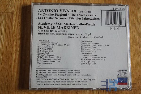 94年陈煐光先生编的《CD圣经》一直是村民玩音响买唱片的良师益友,在这部“圣经”里他称argo的四季:“此片乃《四季》碟皇”!