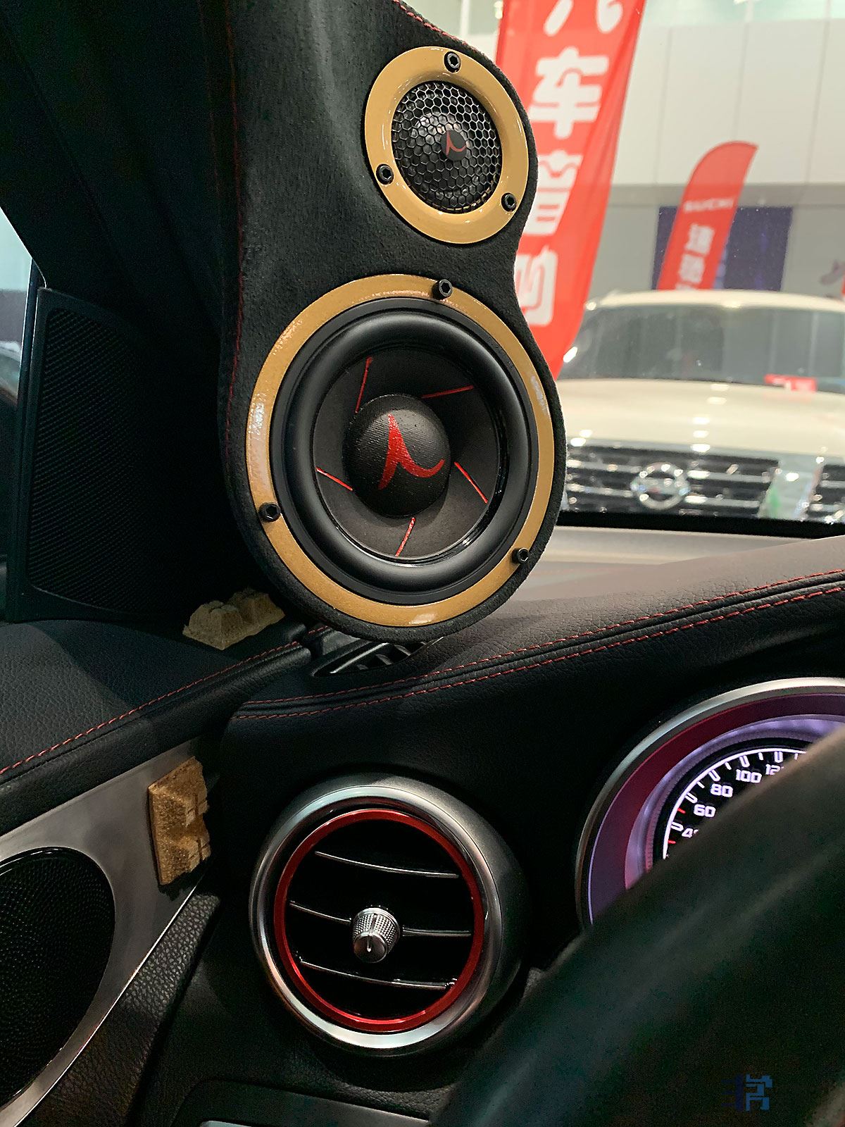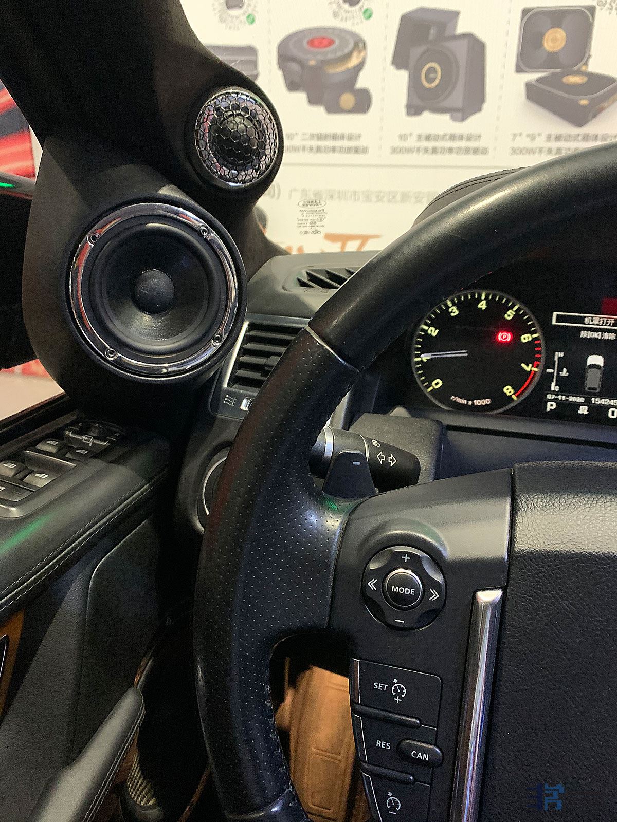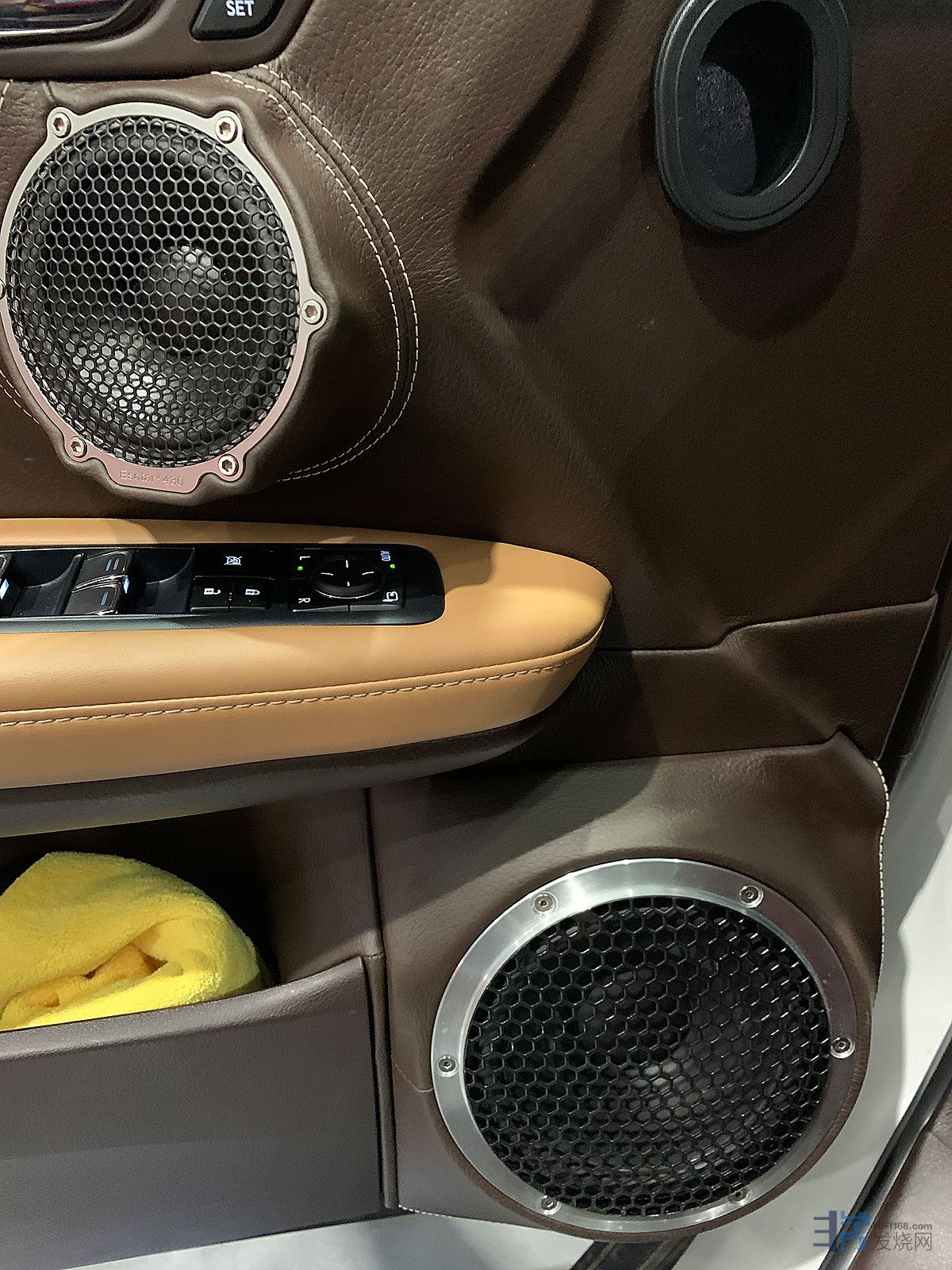 这辆车全部使用比利时VENTURE威卓单元,包括威卓的铍高音单元,但这个单元,已经是8.5万元一对,右边手套箱上,有威卓老板DD的亲笔签名。