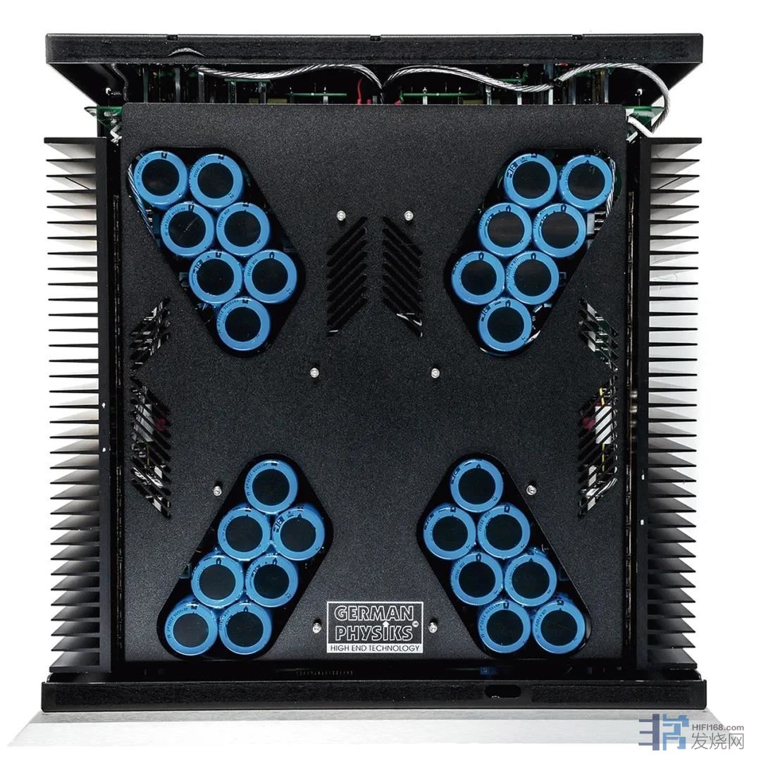 ●数量庞大的电解电容与附加的去耦电容器以X形排列,尽可能靠近电路中需要供电的位置,从电源就开始贯彻最短路径原则。The Emperor Extreme合并功放有超乎寻常的127dB动态范围,与复杂又直接的供电设计有很大关系,理论上已经可以完整重现20Bit数码录音的全部动态,无法表现出如此大动态的反可能是音箱。