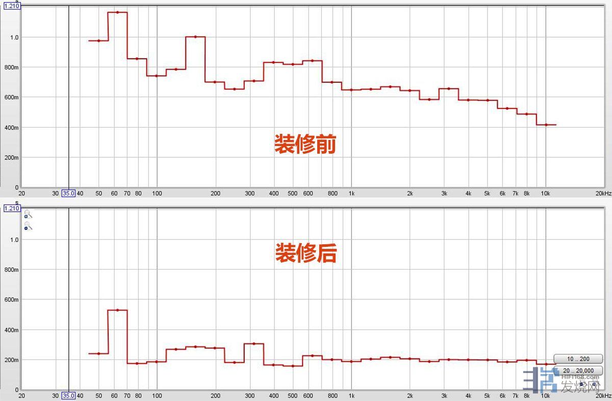 装修前做了简单测试,看着房间比例有戏,但中低频必须处理。石井方案不易恶声,但对低频的吸音效率不高,间层厚度是关键。再测房间的层高,竟是异常低,本就不富裕的家庭雪上加霜,还能怎么办呢?ltgrboy给出了另一个专业解决方案,就是下图: