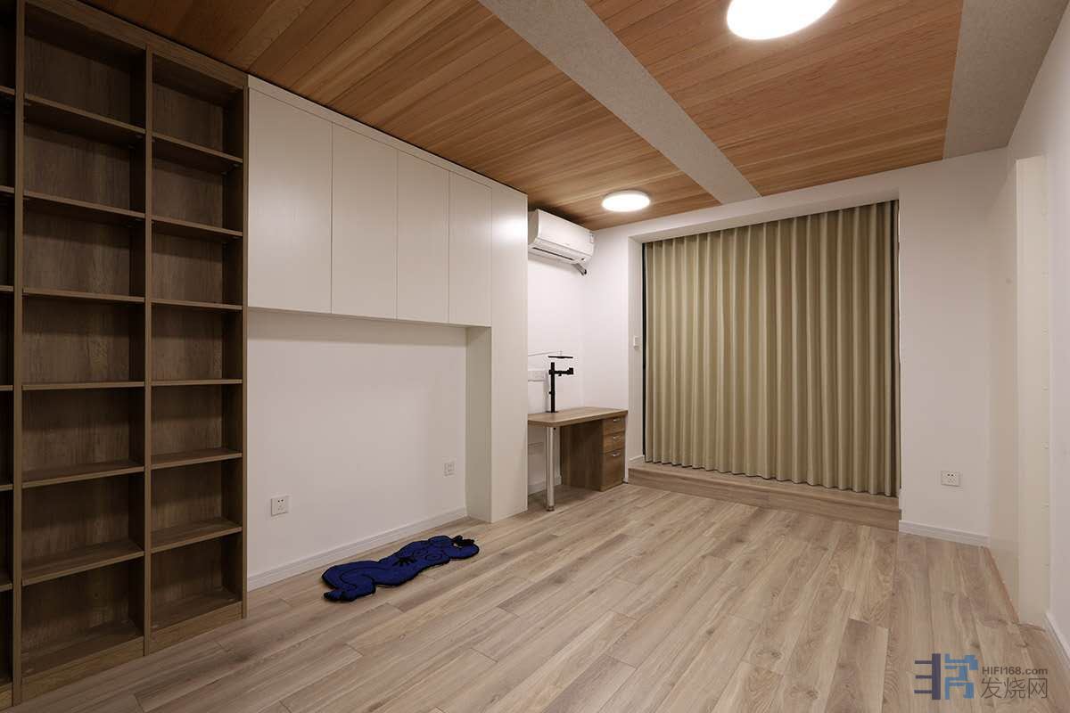 有朋友或许会说,不是每家每户都能装修成这样。从个人角度来说,小刘的这个装修风格我很喜欢。但后期需要加强维护,因为房间里贴的大量木板都没有上漆,怕上漆了不环保,而且会改变板材的反射特性。但上海6月中旬到9月中旬这三个月的高温高湿气候会是比较麻烦的。