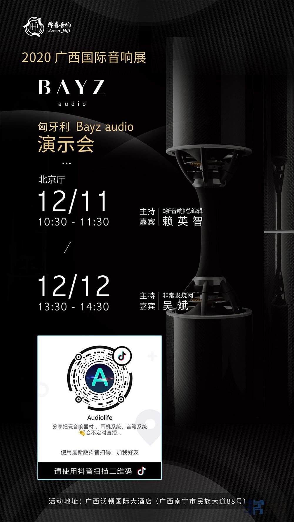 今年具有影响力的产品之一无疑是BAYZ Audio Counterpoint 2.0音箱。这对由Zoltan Bay这位匈牙利电子工程与音箱设计奇才打造,犹如后现代艺术品的扬声器引起业界轰动,独特造型让人印象深刻的旗舰型号售价高达200多万。设计师Zoltan Bay,是一位杰出的跨学科设计师和发明家,持有很多专利。他拥有令人印象深刻的伟绩和家史,更重要的是,他是与众不同的Hi-End音响设计师,具有特立独行的音乐爱好。12月11日-12日匈牙利Bayz Audio演示会有参展的烧友们可千万不要错过咯,没法到场的烧友可扫描图中二维码关注“Audiolife”抖音号,届时将有全程直播,与您一起线上线下一同品鉴。